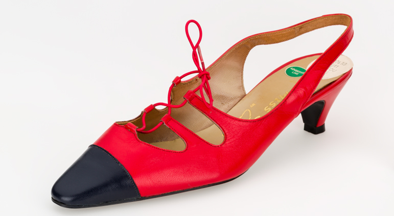 These ‘Duskdawn’ shoes were made in 1957, and are from the Skyline collection. This image exemplifies the inevitable consequence of displaying our collection in a museum case. Whilst the shoe on the right hand side has been held in a box away from any light, the shoe on the left has been on display in the museum, and has consequently sustained damage from the light used to illuminate […]