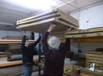 Neil took the opportunity to secure the various mechanisms and weights against the shaking and jiggling to come for Eureka whilst tucked up in a transit van heading down the M5 across the county boundary.