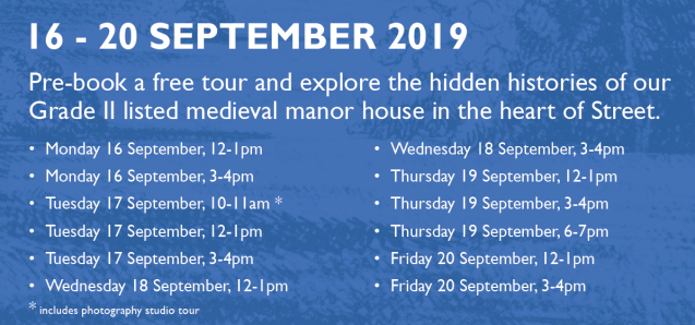 Go behind the scenes at The Grange with FREE daily pre-bookable tours during Heritage Open Days and explore the hidden histories of the Grade II listed medieval manor house in the heart of Street. Discover how this remarkable site has transformed over time and hear stories of the people who lived and worked there. Find out more about the latest chapter of The Grange’s life as the Clarks archive and research centre and how you can help to shape its future.